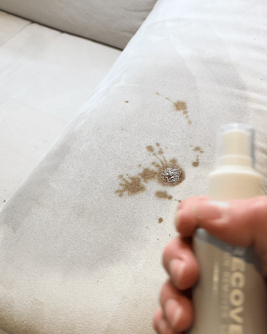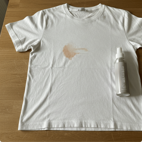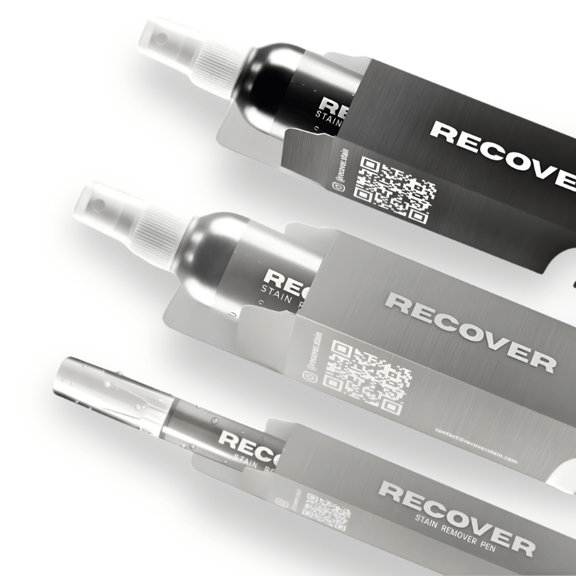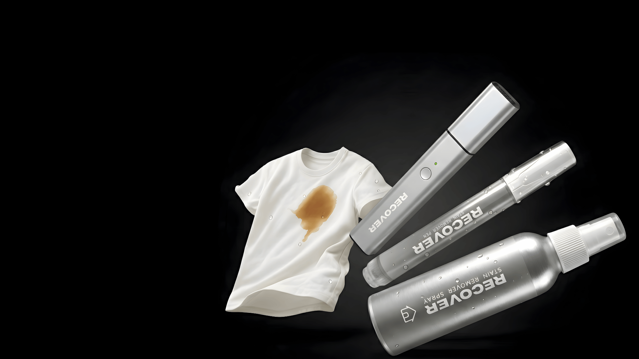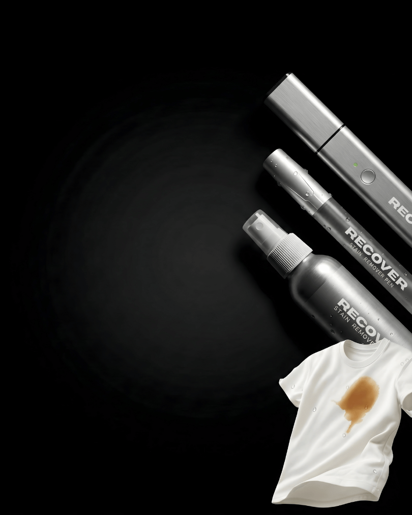 RECOVER is a high-end stain remover designed to instantly eliminate stains â coffee, wine, makeup, sauce, mud â on clothes, shoes, and fabrics, without damaging fibers or fading colors.